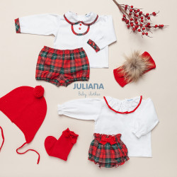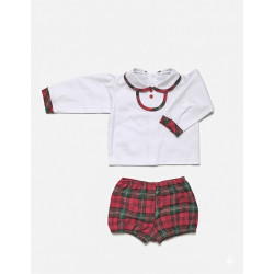Conjunto bebé Navidad tartán rojo con camisa blanca y bombacho