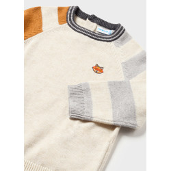 Jersey de bebé MAYORAL de punto suave con bordado de zorro y mangas a rayas. Cómodo, cálido y perfecto para otoño e invierno.