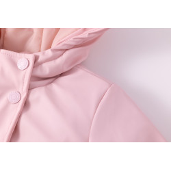 Chubasquero de bebe con capucha y manga larga acabado en puño interior. Cierre cremallera frontal. Bolsillos delanteros de plastón con tapeta. Forro tejido borreguito. Tejido especial repelente al agua.
